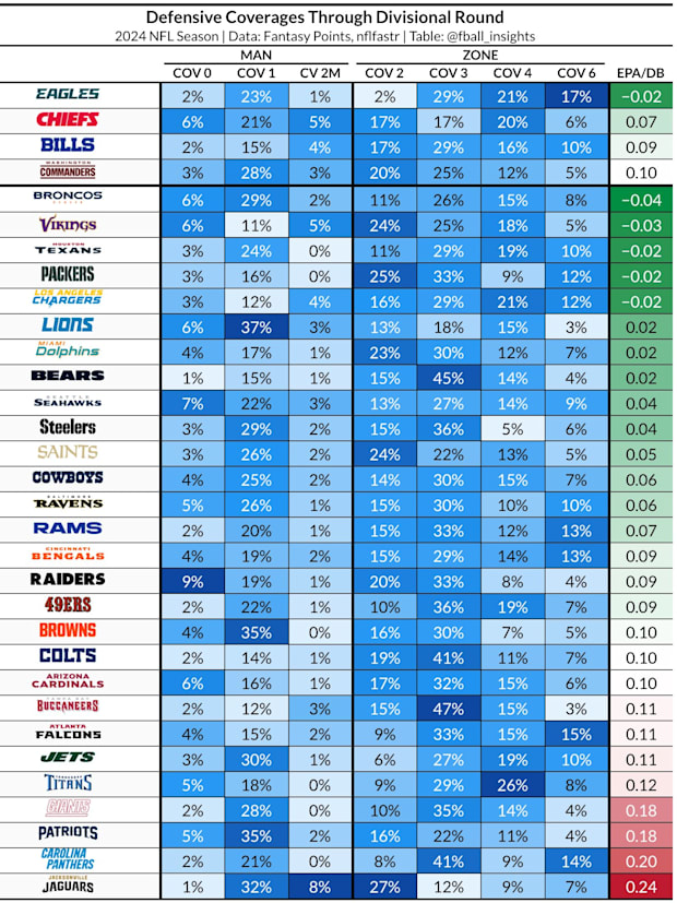 Coach Golden should know this as he spent a long time in both college and the NFL and it should be expected that he will dial back the man coverage calls. The Bengals should still see an uptick in their Cover 1 percentage, which was about middle of the pack at 19%, but it won’t get near the 50+ percent that Golden was using in South Bend.