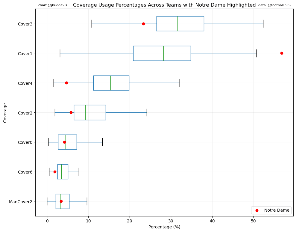 Golden’s defense played Cover 1 over 50% at Notre Dame according to Sports Info Solutions.