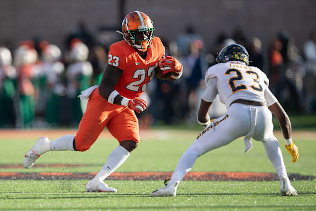 In 45 games with Florida A&M, Jennings tallied 1,860 yards on the ground and 25 total touchdowns en route to the Rattlers’ 2023 SWAC Championship title. After not hearing his name get called in the 2024 NFL Draft, he was invited to the Patriots’ rookie minicamp as a tryout player. From there, he signed a deal as an undrafted free agent, who later parlayed his summer performance into a chance on the practice squad.