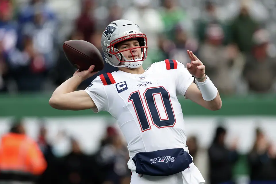He was 19 of 21 for 256 yards and a 157.0 quarterback rating with TD tosses to Rhamondre Stevenson, Stefon Diggs, Austin Hooper, Hunter Henry and Efton Chism III before being lifted for Joshua Dobbs with 5:31 left in the third quarter. Maye became the first player in NFL history to complete 90% of his passes while throwing for 250 or more yards and five TDs in a single game.