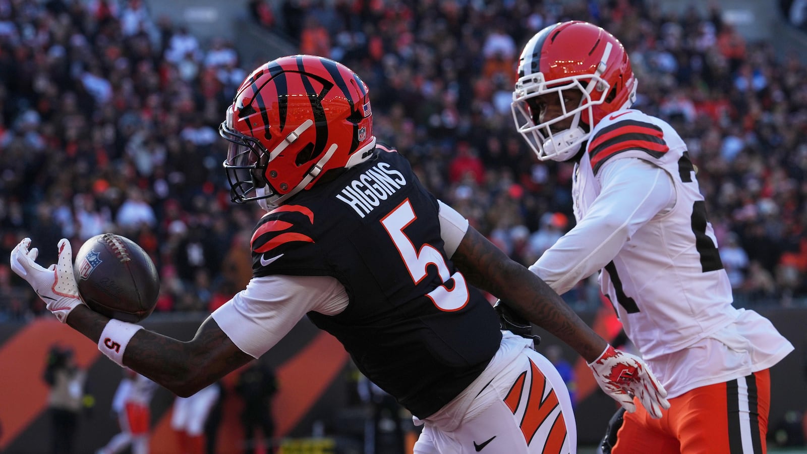 Higgins caught 59 passes for 846 yards and a career-high, AFC-leading 11 TDs in 15 games this past season. Only Los Angeles Rams wide receiver Davante Adams, playing in the NFC, had more touchdowns, and Higgins compiled a career-long streak of four consecutive games with at least one touchdown catch from Weeks 7 through 11.